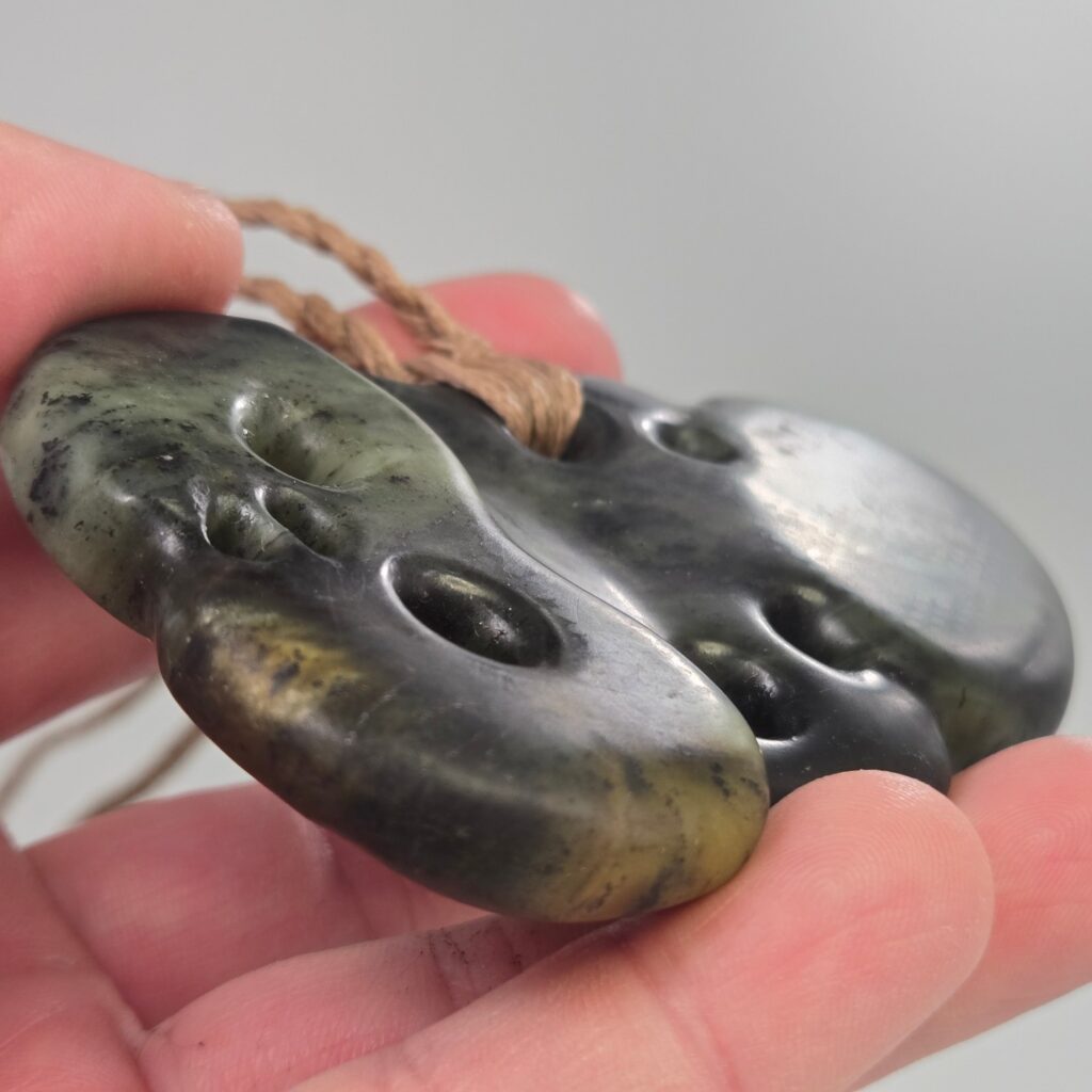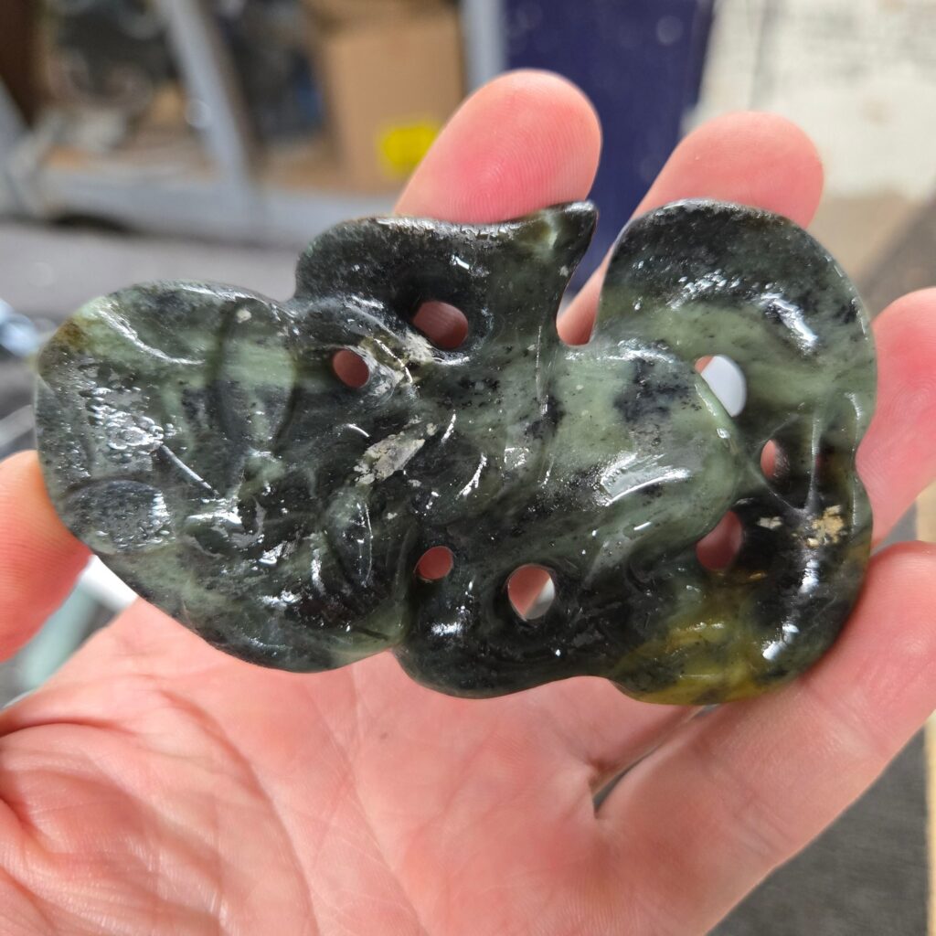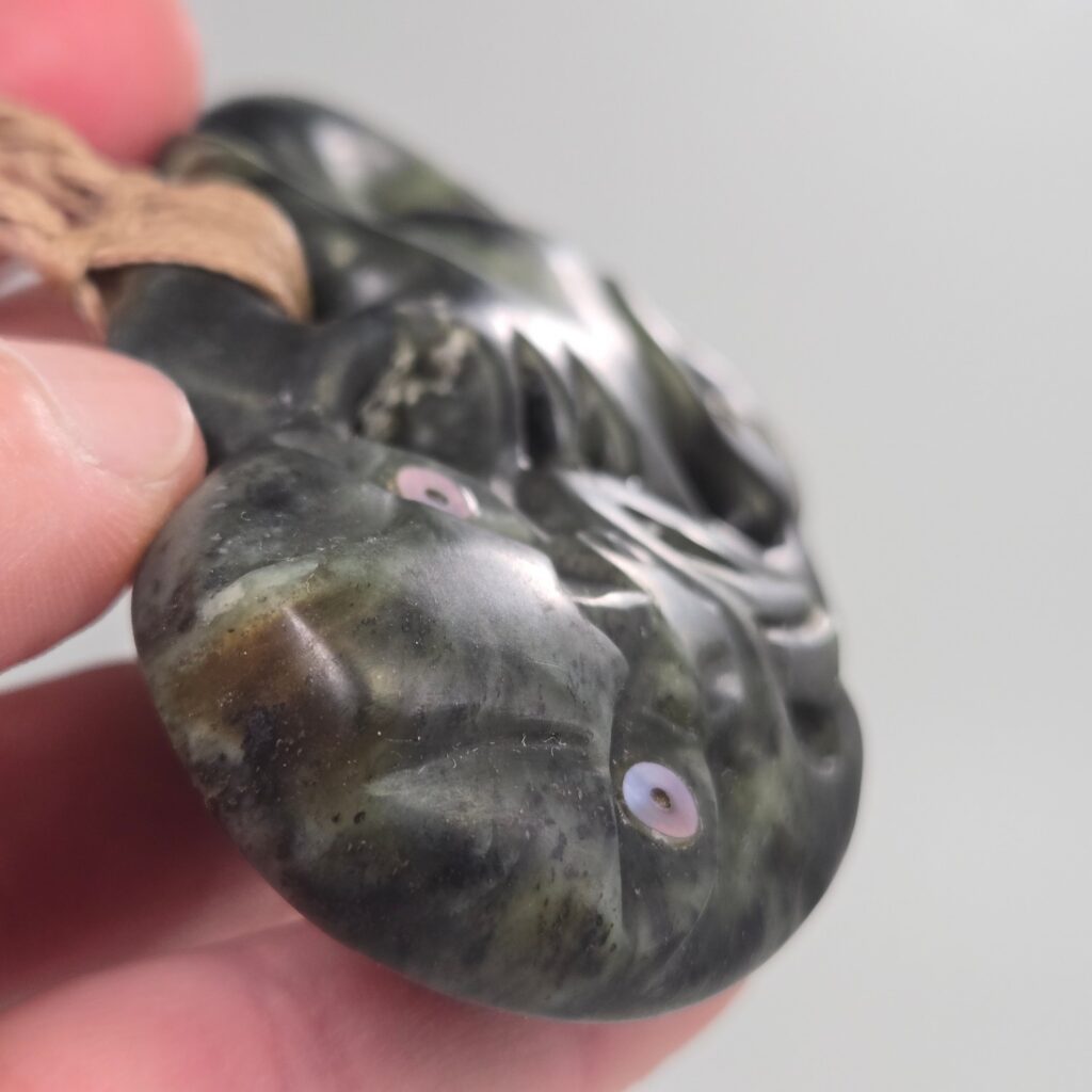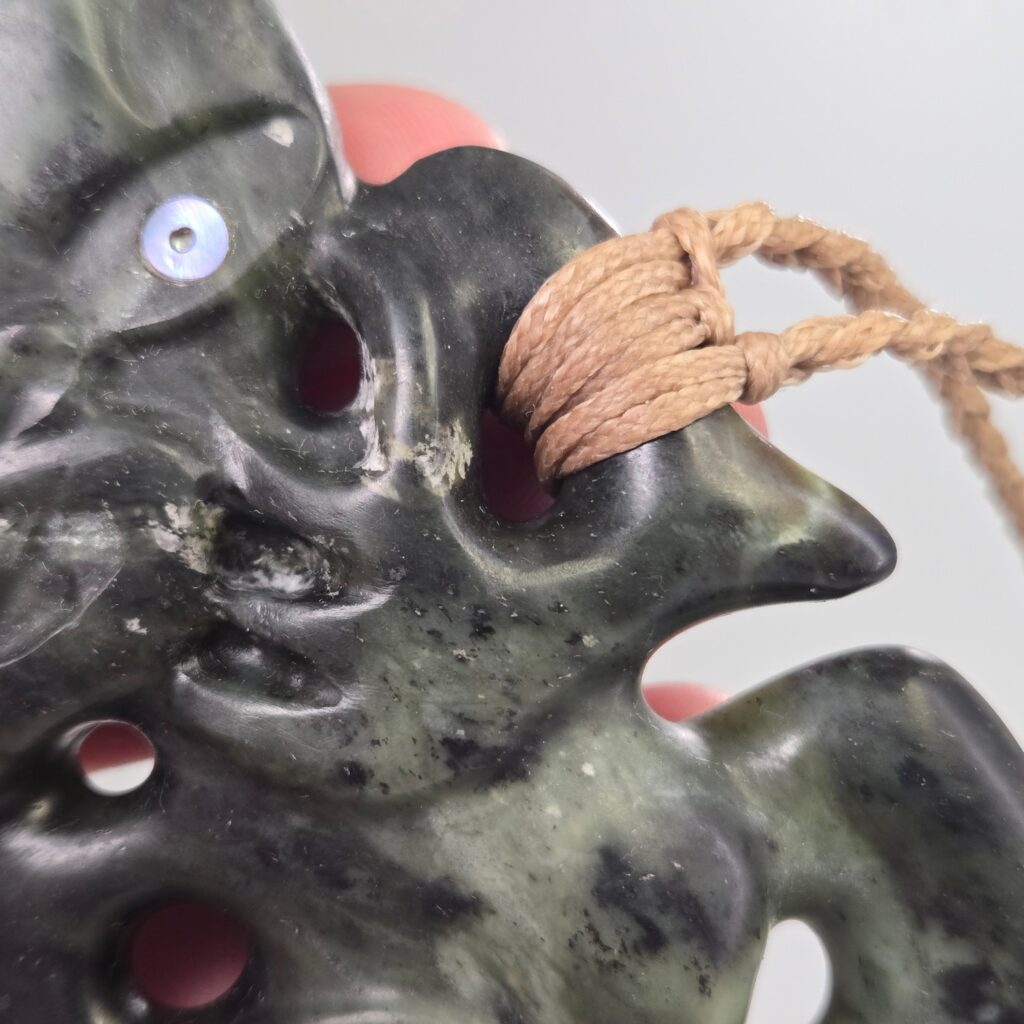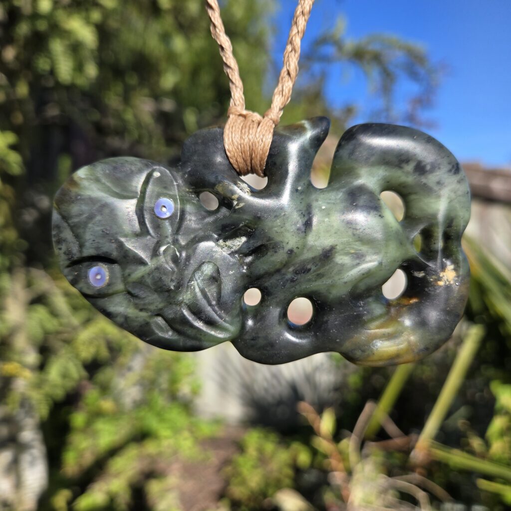 This Hei Tiki was carved to represent a person of deep strength, quiet leadership, and strong presence. Not just physical strength, but something much deeper — a calm, grounded nature paired with an ability to see and understand people beyond the surface. The kōrero shared described someone who carries himself with humility, who does not seek recognition, but who naturally guides, protects, and lifts those around him. There is a sense of awareness and intuition in the way he moves through the world, and a strength that others feel when they are around him. This taonga acknowledges that role — not only as a representation of who he is, but as something that stands alongside him, offering protection so he can continue to support others.