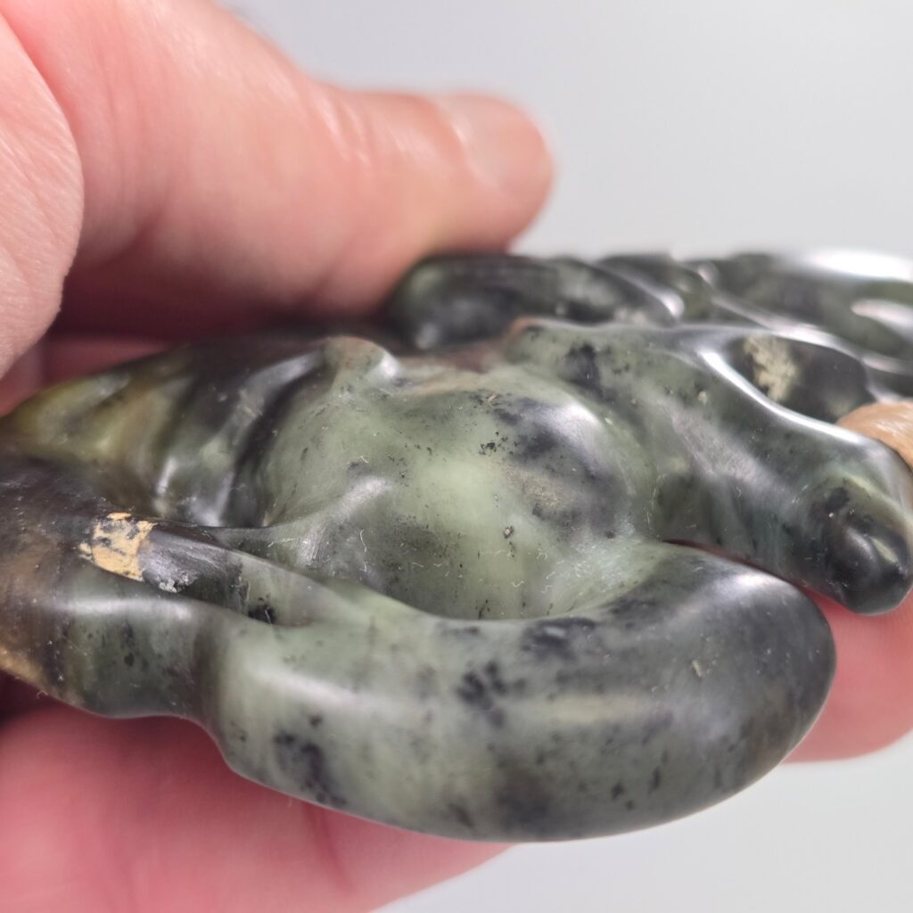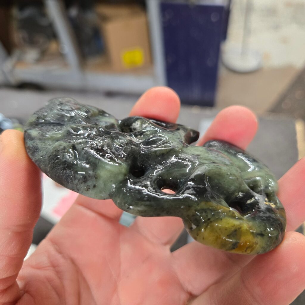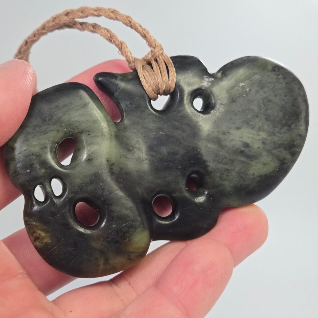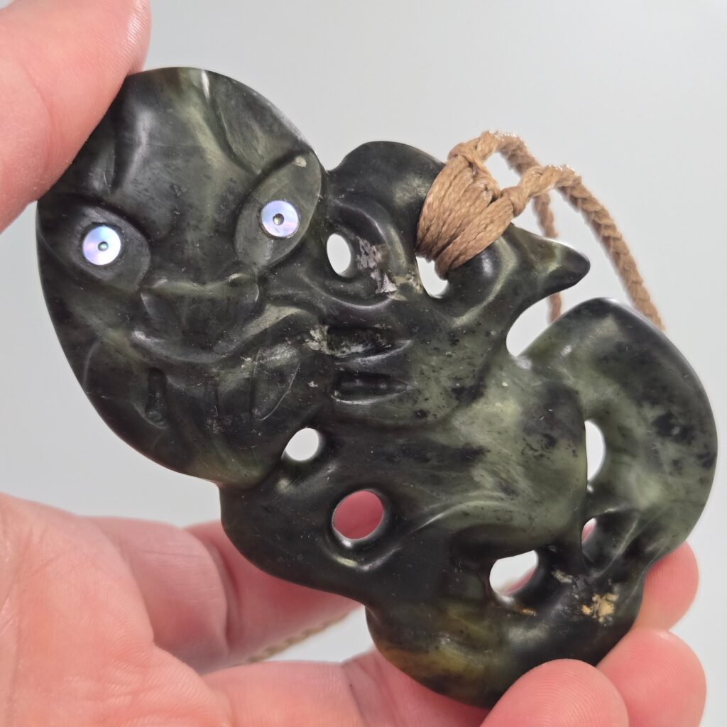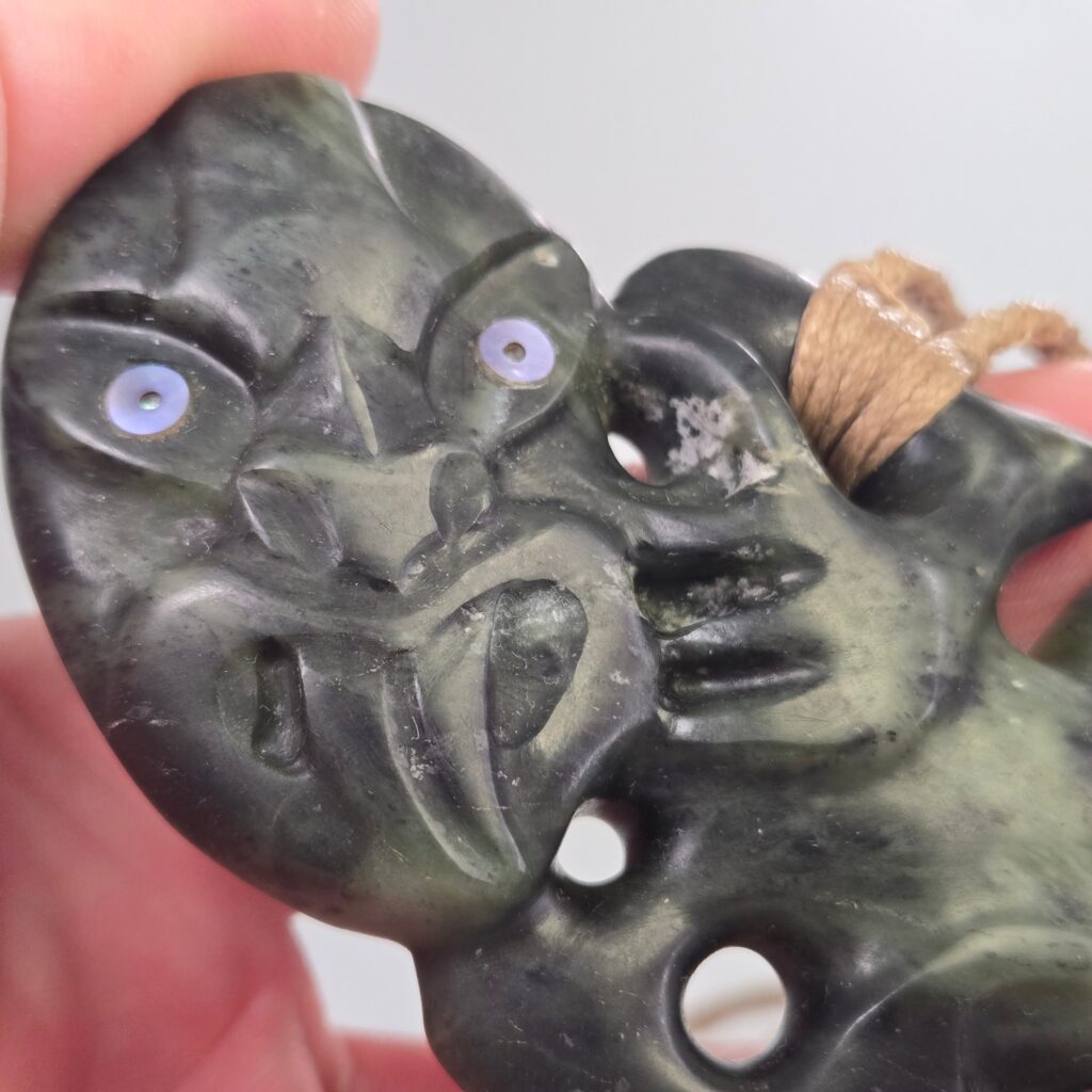 This Hei Tiki was carved to represent a person of deep strength, quiet leadership, and strong presence. Not just physical strength, but something much deeper — a calm, grounded nature paired with an ability to see and understand people beyond the surface. The kōrero shared described someone who carries himself with humility, who does not seek recognition, but who naturally guides, protects, and lifts those around him. There is a sense of awareness and intuition in the way he moves through the world, and a strength that others feel when they are around him. This taonga acknowledges that role — not only as a representation of who he is, but as something that stands alongside him, offering protection so he can continue to support others.