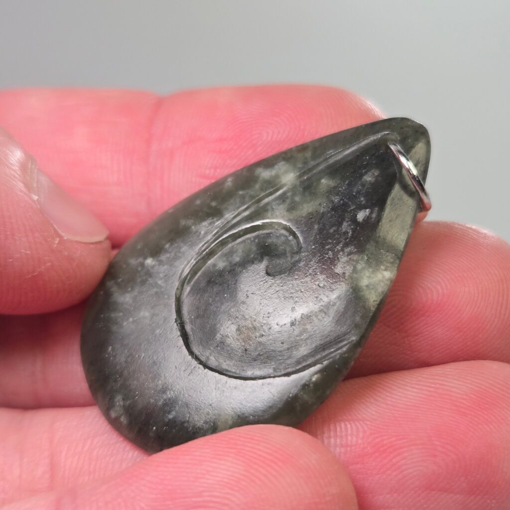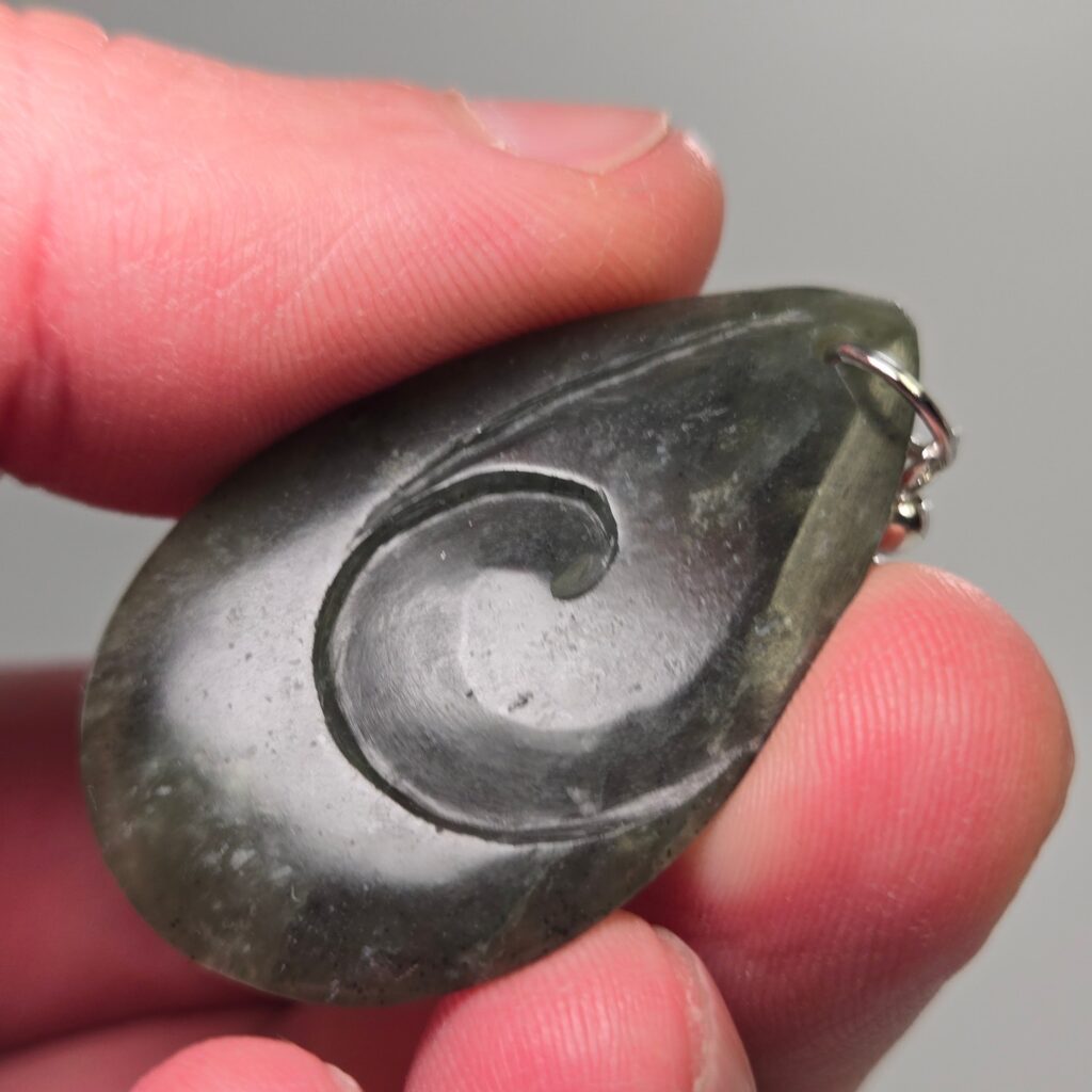 The design is based on the organisation’s logo, with koru elements carved into each piece. While the koru traditionally represents growth and continuation, in this case it also reflects the identity and values of the organisation itself. The meaning sits primarily with the people who commissioned it and the person receiving it, making these earrings specific to that shared story.