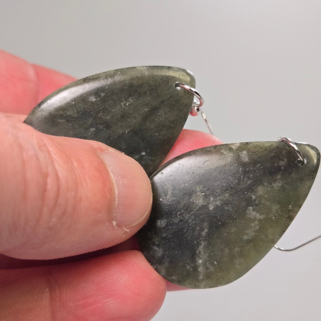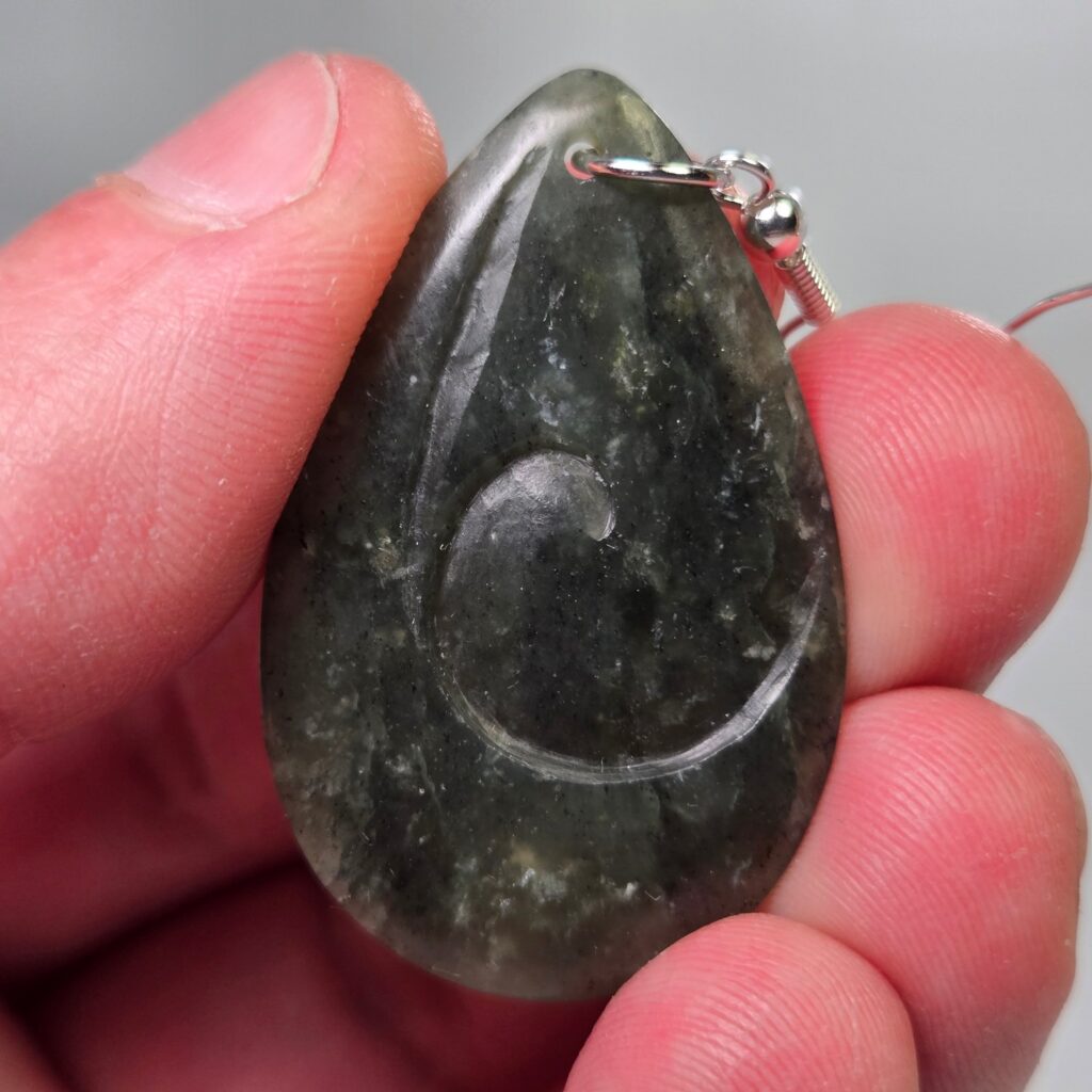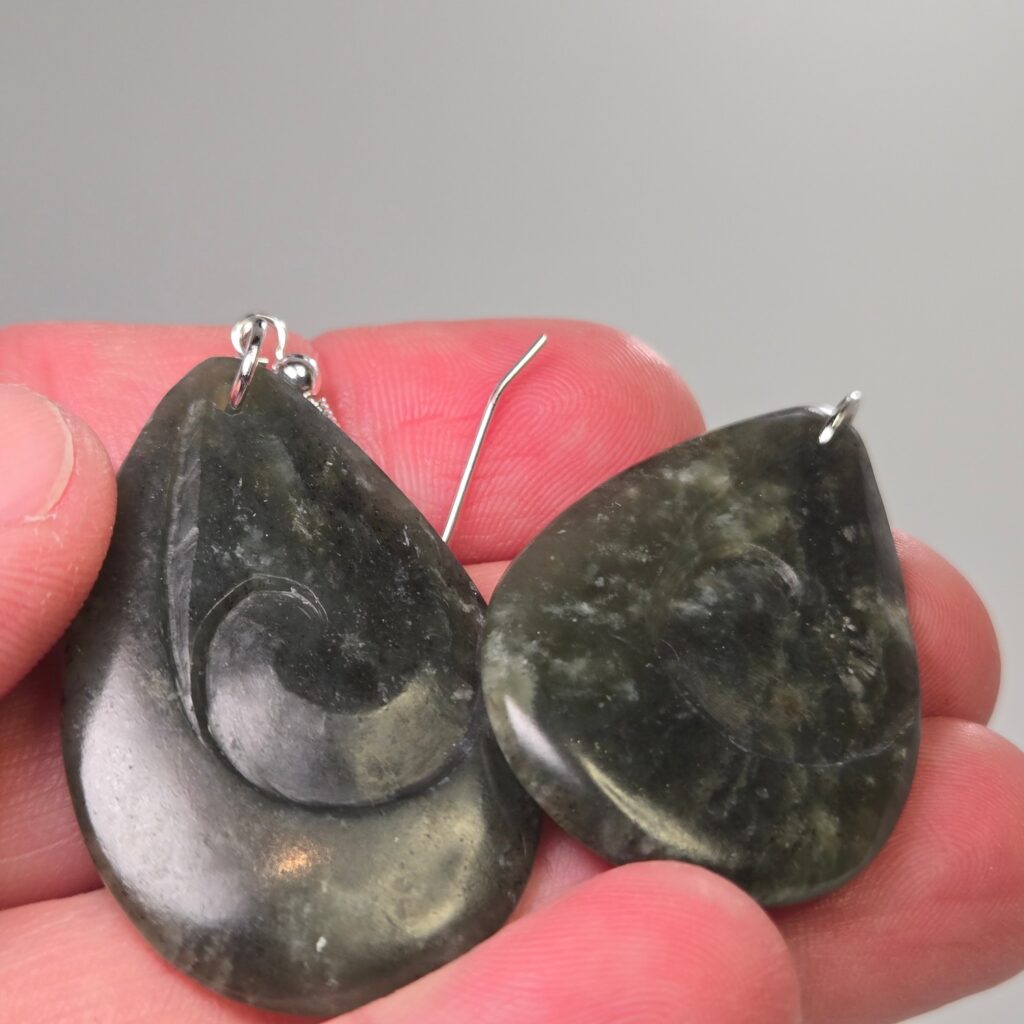This pair of Pounamu earrings was carved as a leaving gift for a valued member of an organisation, marking their time, contribution, and the connections they carry forward.