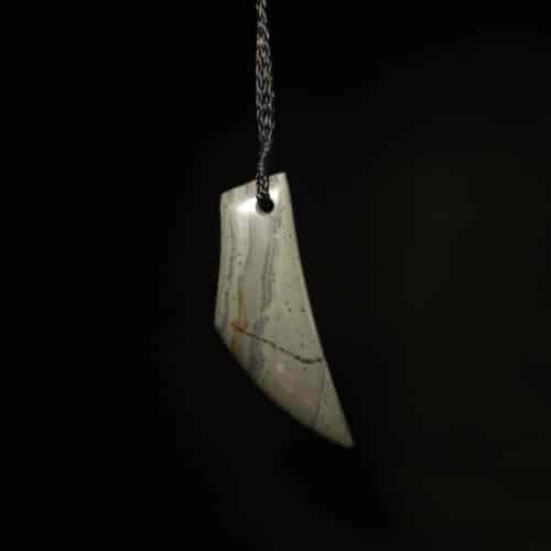 This 70mm Roimata is carved from striped grey Pakohe sourced from the Takaka area. Tapered at both ends, it reflects the natural flow of emotion and healing. Pakohe is a stone of strength, endurance, and connection to tūpuna, and this piece honours that legacy. It’s finished with a black spiral lashing and ready to wear.