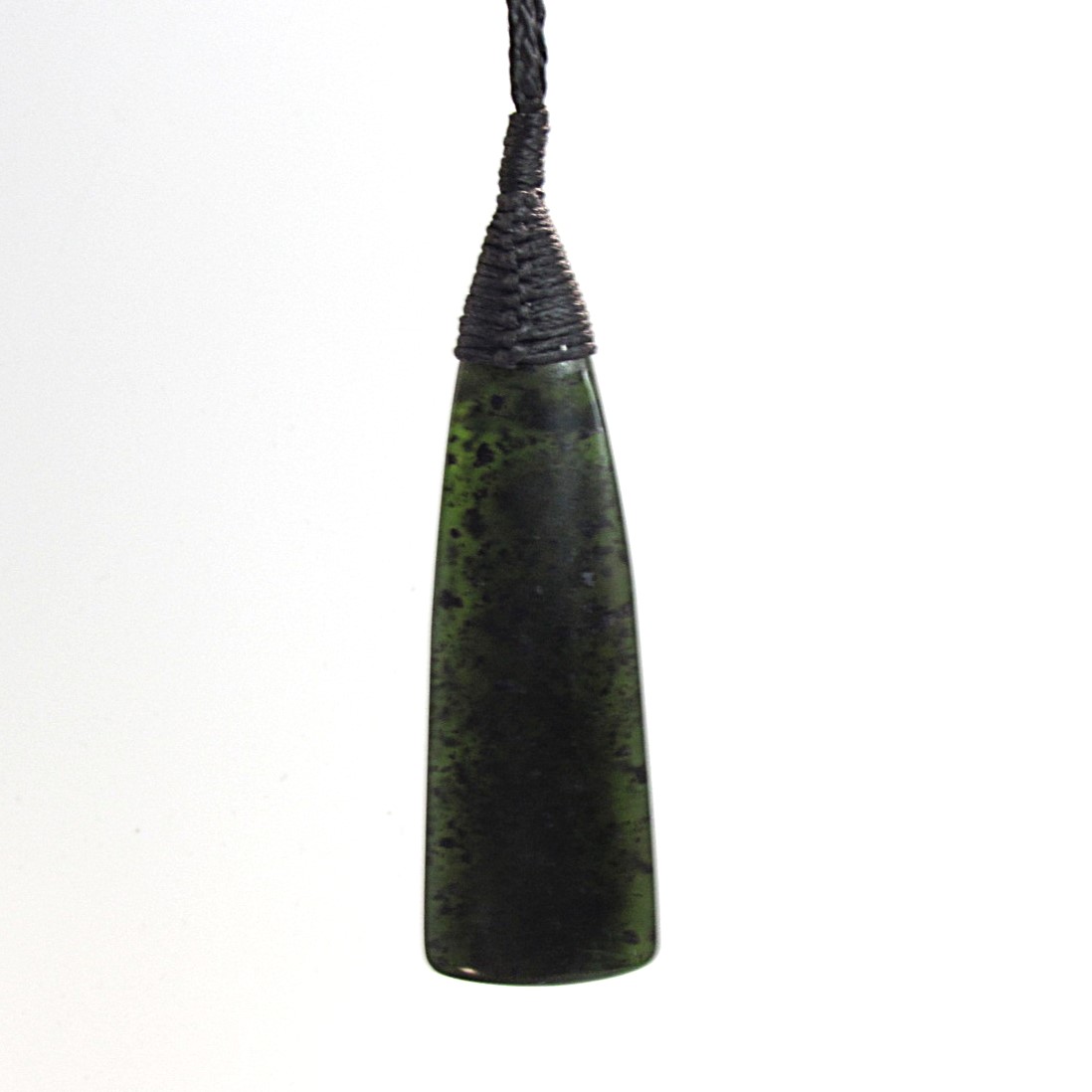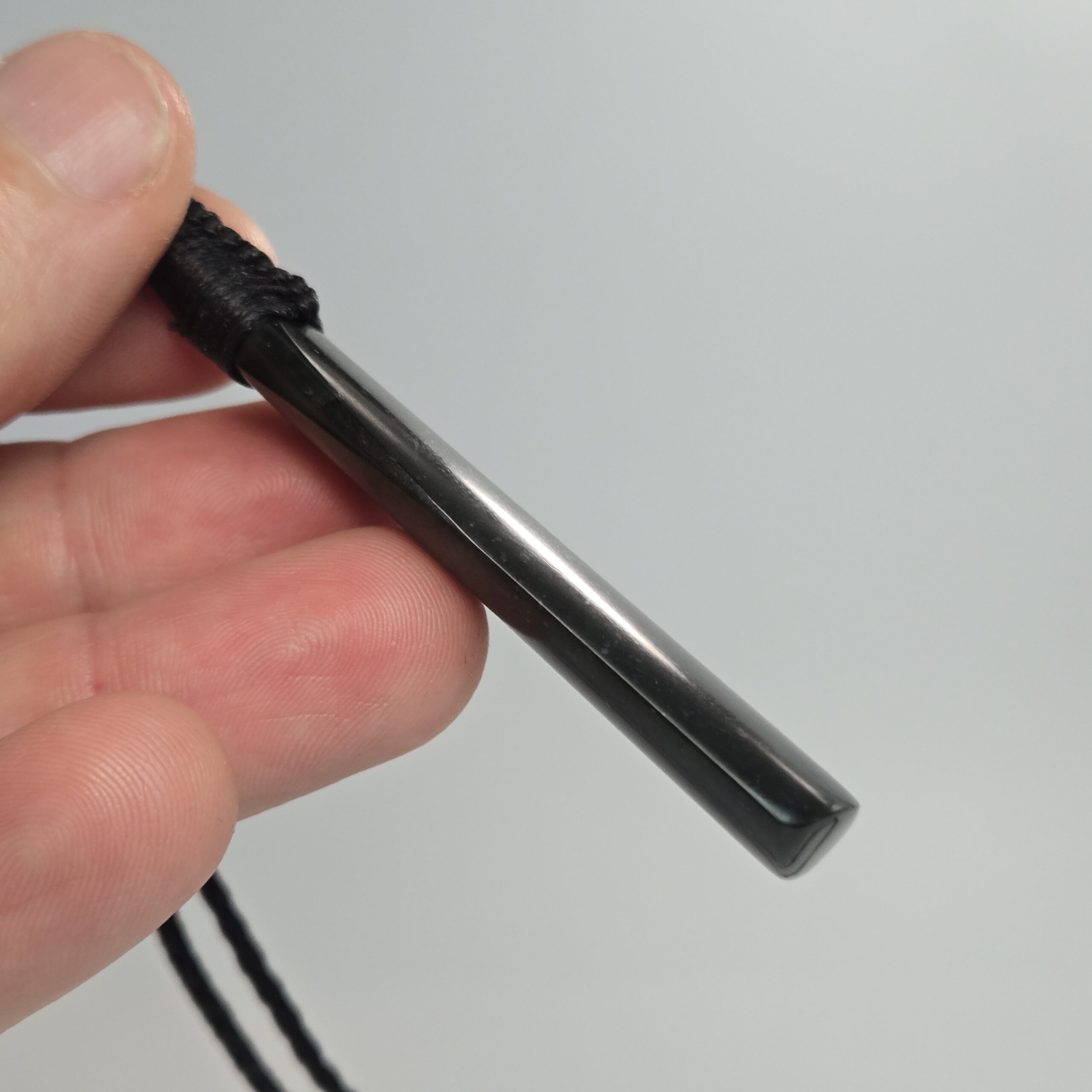 The Roimata form represents emotion, reflection, and release. This piece speaks to clarity emerging from within, with light passing through darkness. It is finished with a black spiral lashing that sits cleanly and allows the taonga to hang naturally.