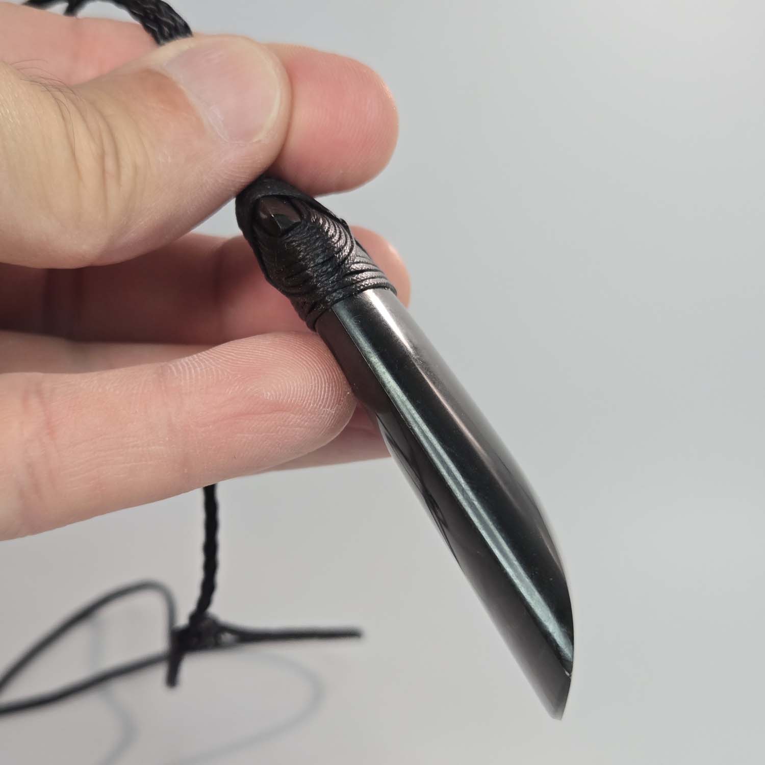 It is finished with a black lashing and matching black cord, keeping the overall look clean and understated. This is a strong, timeless taonga suited to someone who values meaning, simplicity, and quiet strength.