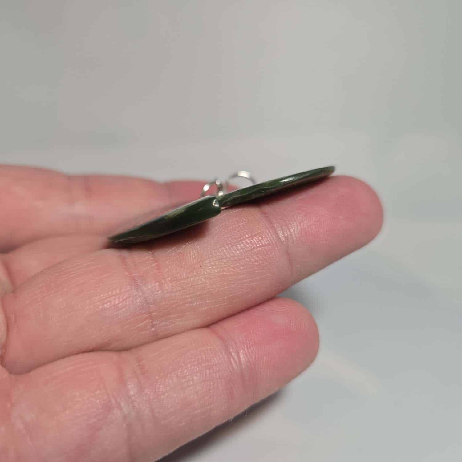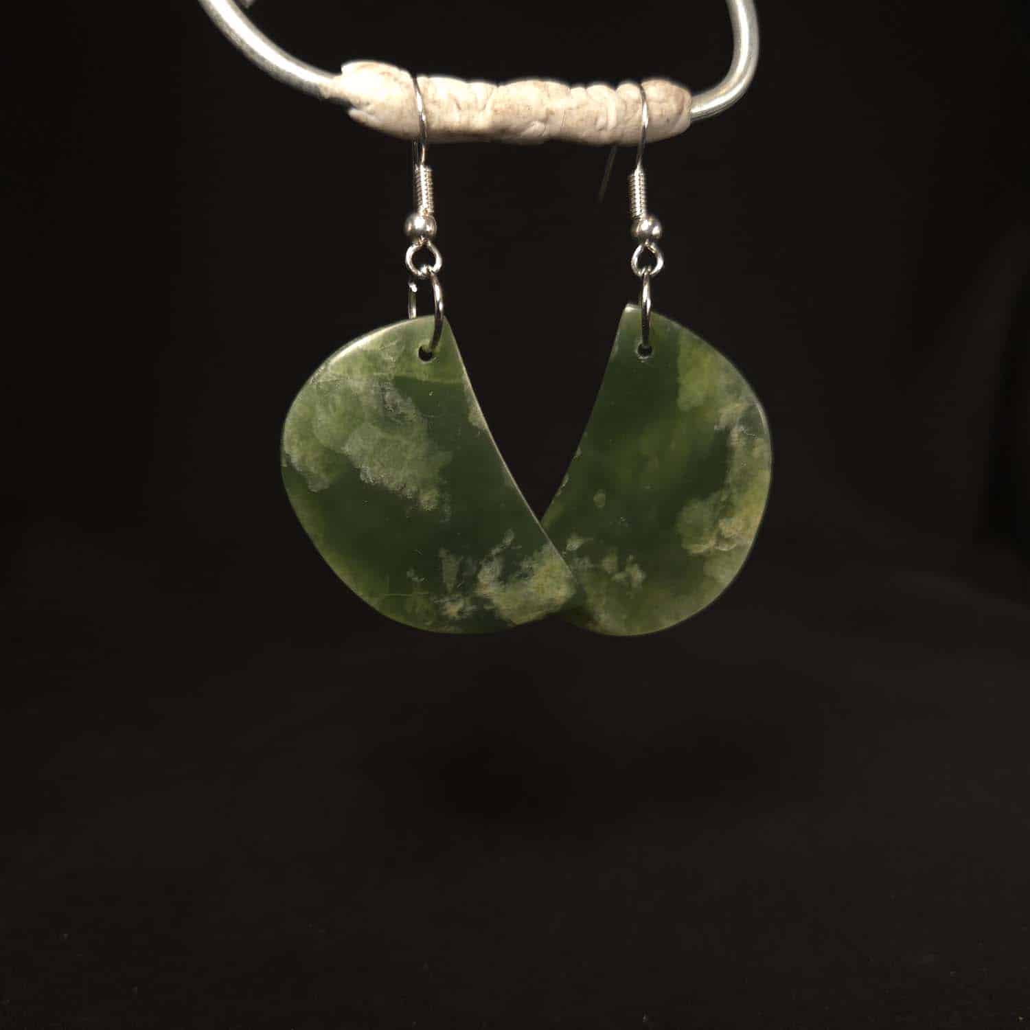 Carved from beautiful Marsden Flower Jade, this pair of earrings features wide crescent moon shapes that reflect light with incredible brightness and clarity. The Pounamu is a vibrant, bright green with high translucency, typical of high-grade Marsden stone. At 35mm long (excluding the silver-coloured hooks), they carry an elegant presence while remaining lightweight and easy to wear.