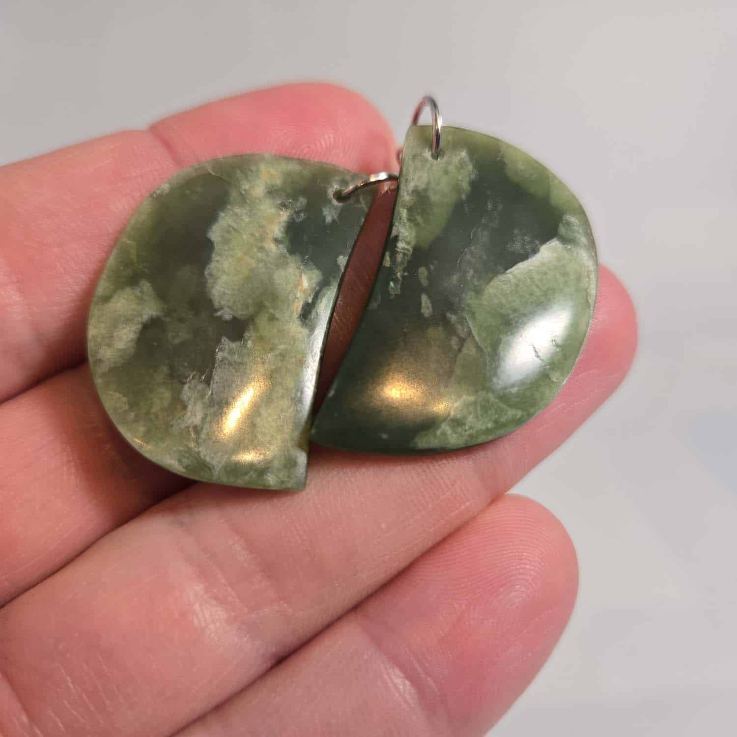 These earrings are carved from bright green Marsden Flower Jade, known for its vivid colour and striking translucency. Shaped into wide crescent moons, each 35mm long (excluding the hooks), they glow with light and life. A unique, one-of-a-kind pair that connects the beauty of Pounamu with the elegance of celestial design.