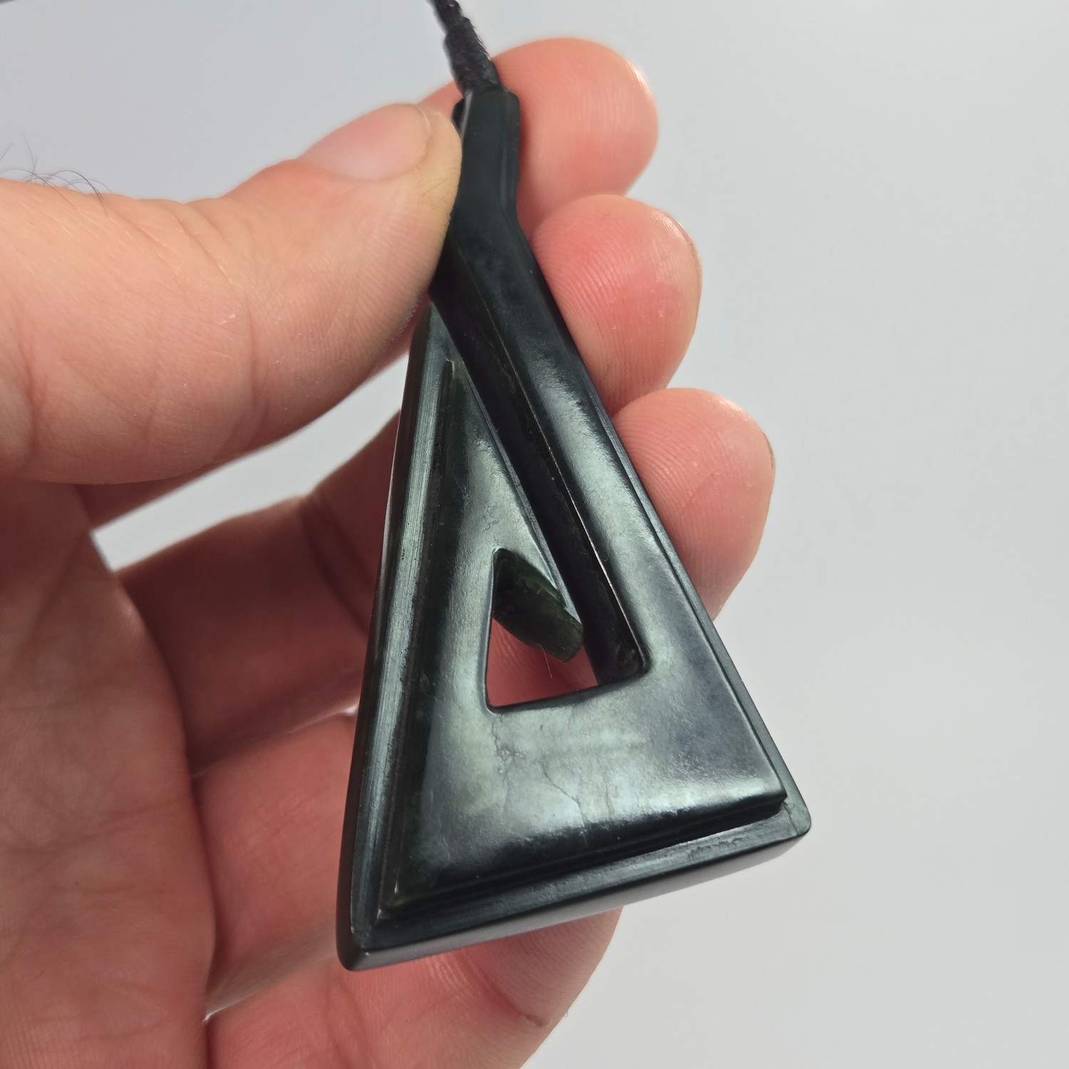 The recessed bevels suggest layers — of experience, of thought, of the unseen shaping the seen. It is a taonga that feels grounded, steady, and intentional. Something to wear as a reminder that direction is not always found — sometimes it is made.