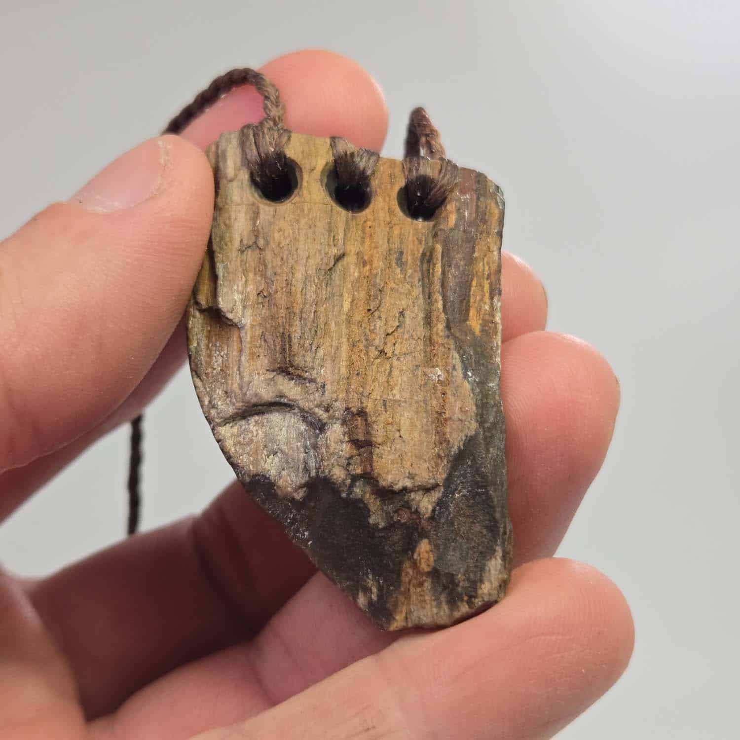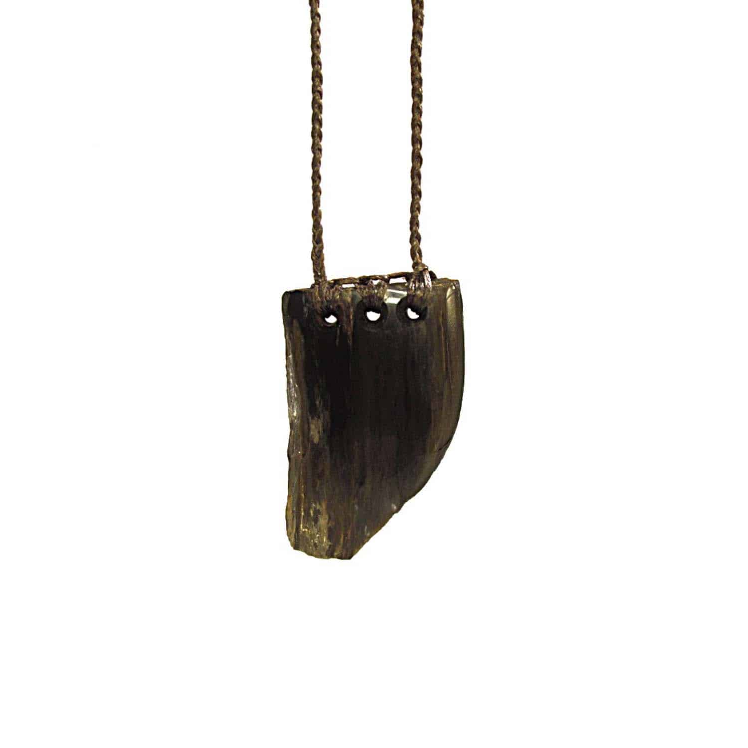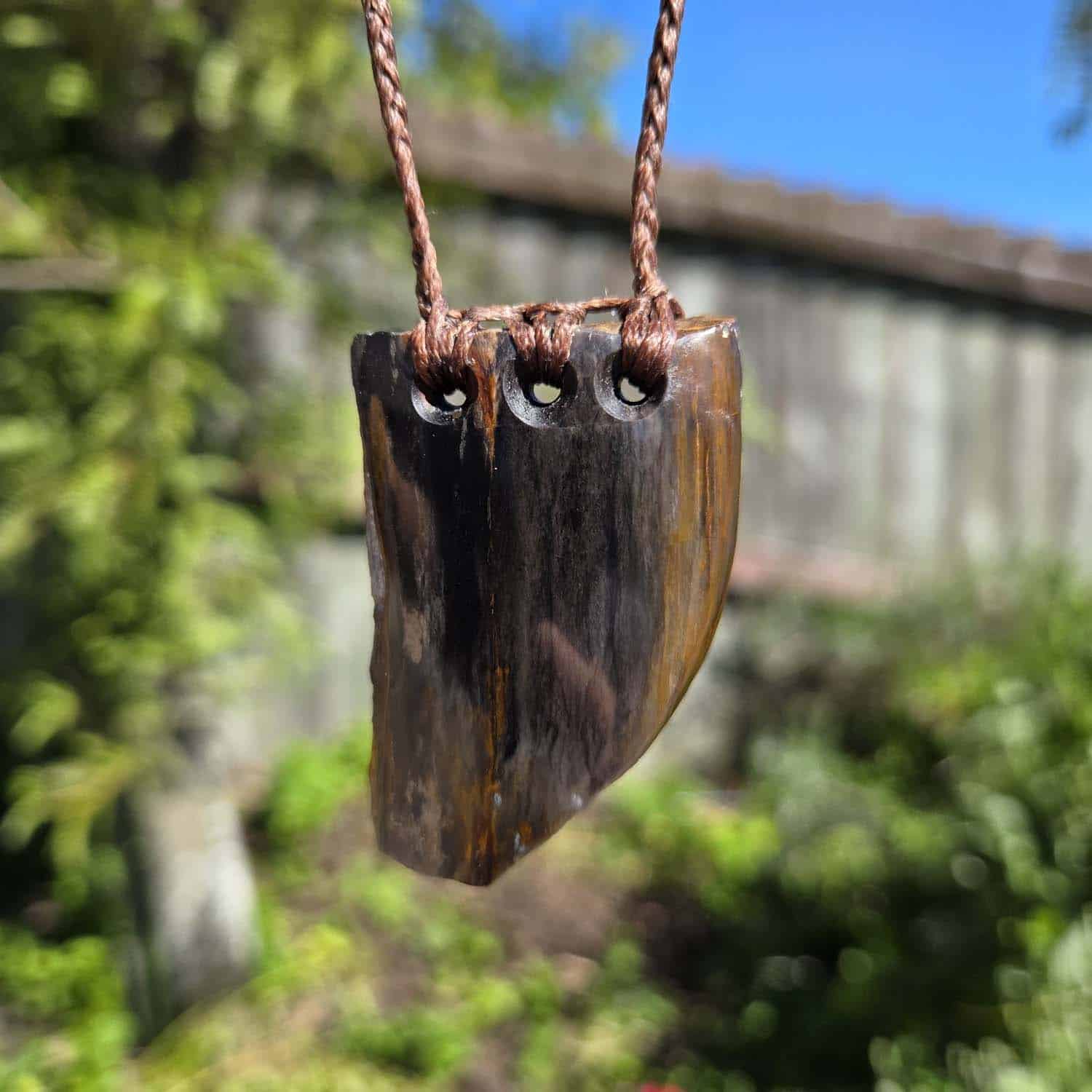 This Niho, Ngākau Kōhatu, is carved from fossilised wood discovered in Southland. The wood began its journey millions of years ago, slowly transformed by the earth into stone. That transformation — from life to endurance — gives the piece its name: Ngākau Kōhatu, meaning “Heart of Stone.”