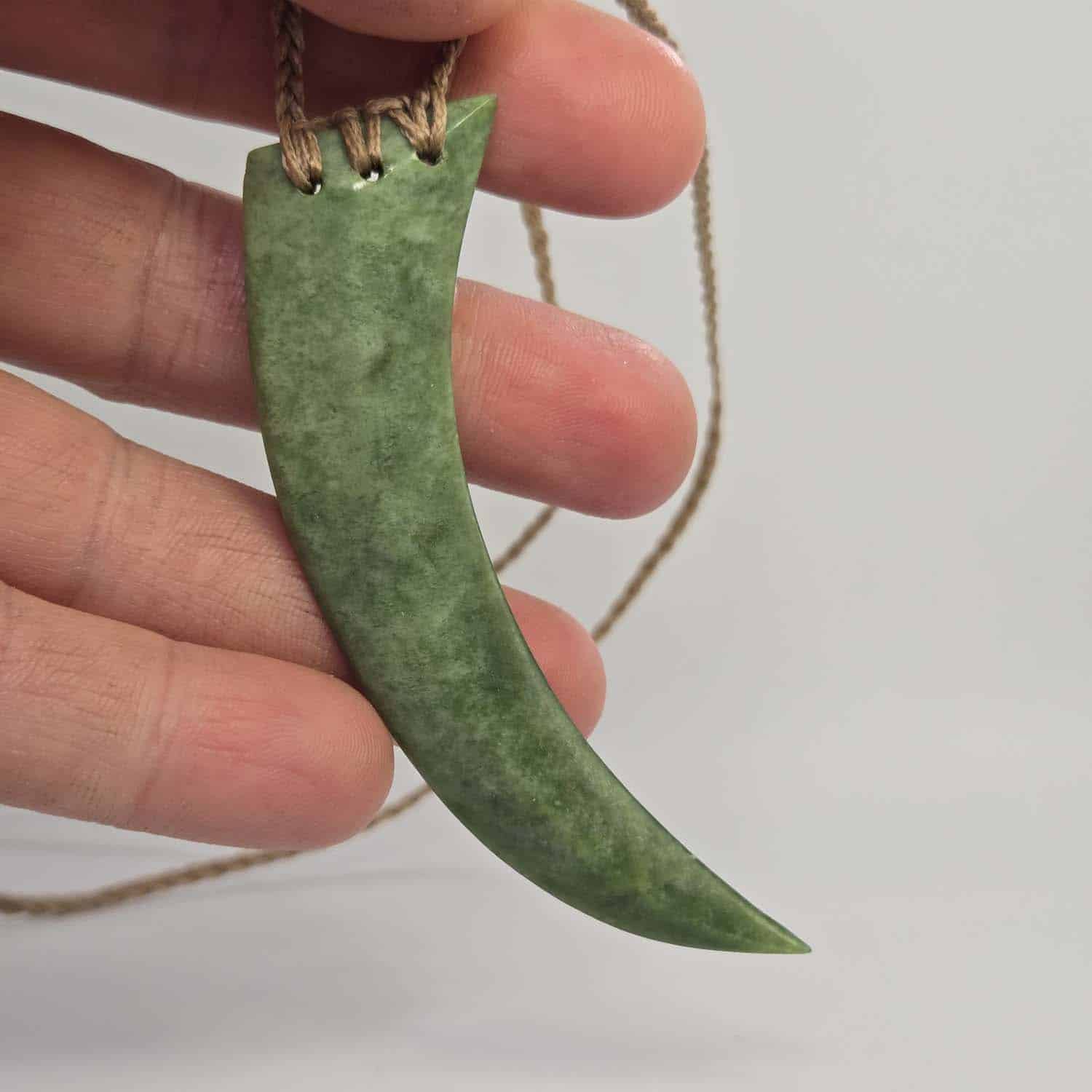 This taonga is both a protector and a companion â a piece of Pounamu that embodies the enduring power of the niho while carrying its own unique glow and form.