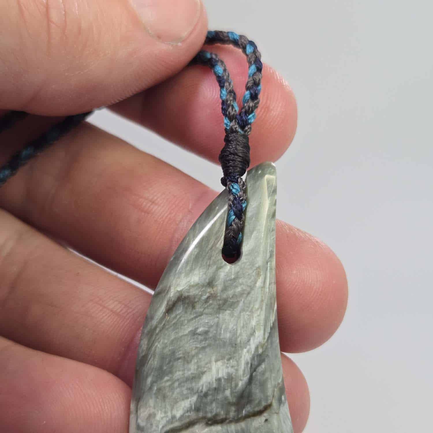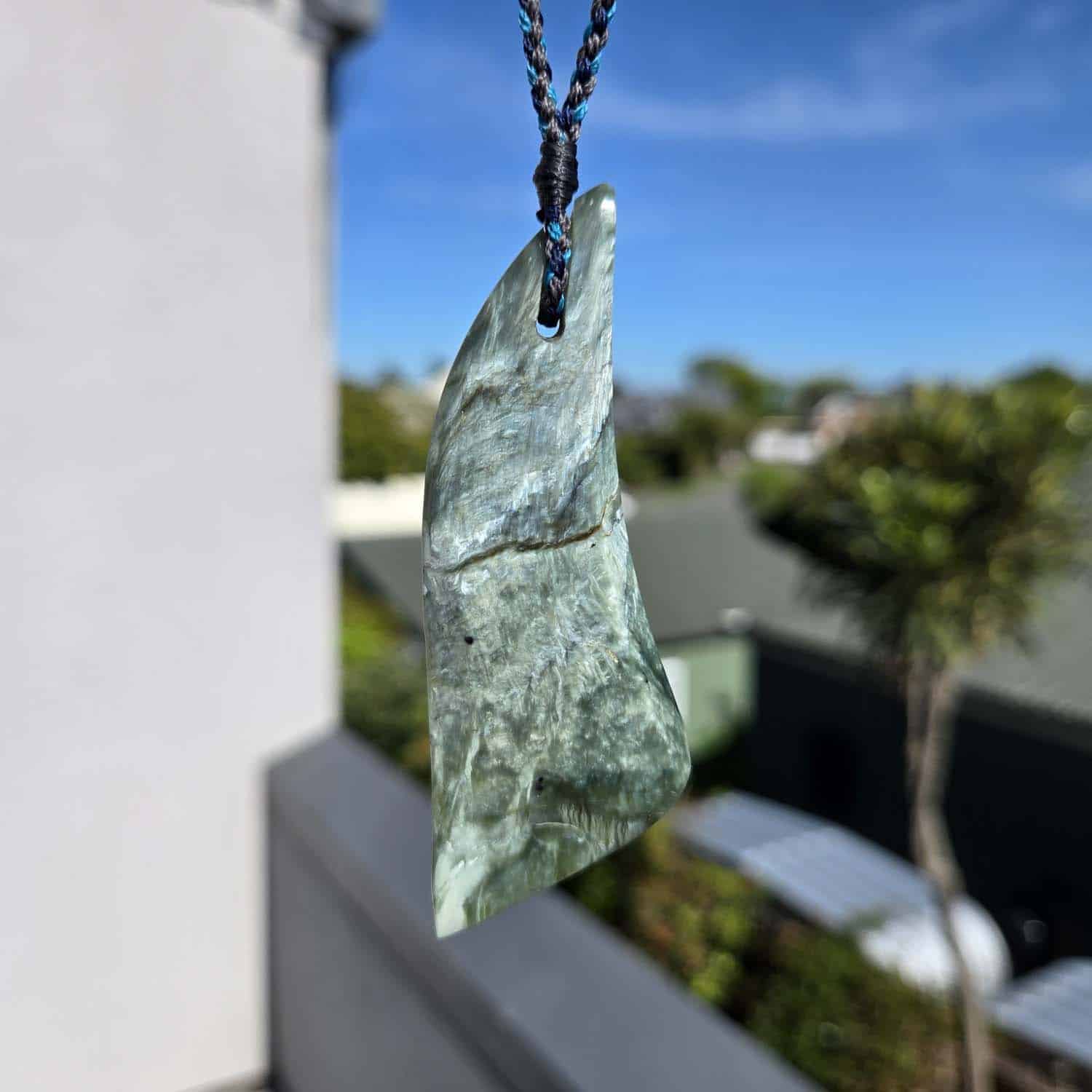 The shape is a free-form Roimata with gentle curves guiding the eye to a striking, pointed base. It feels balanced, smooth in the hand, and full of character. This is a taonga for someone who values authenticity, healing, and the quiet strength that comes from carrying meaningful stone close to the heart.