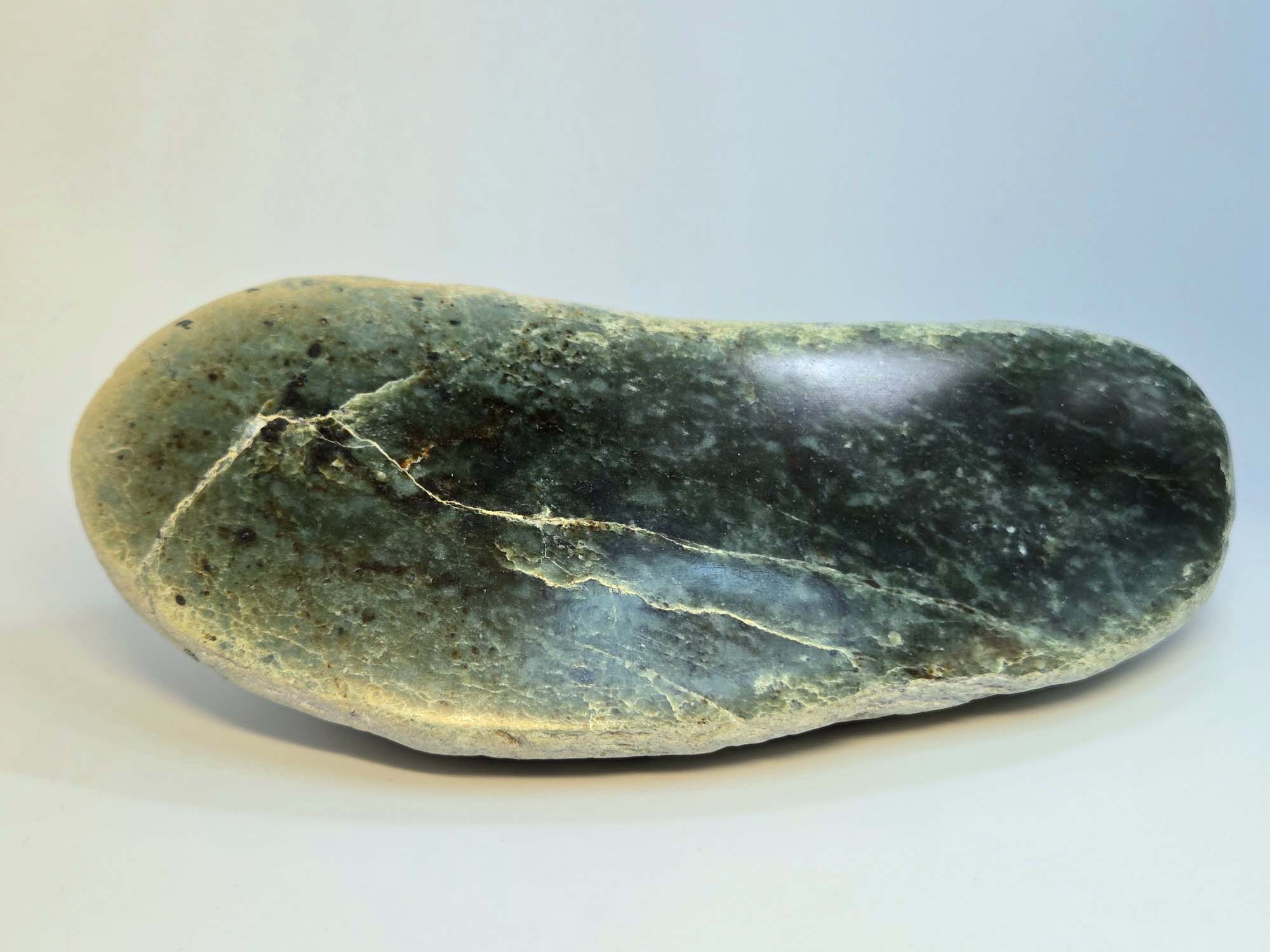 This serpentine Pounamu touchstone is a deep green with pale edges and a touch of orange. At 15cm long, it’s ideal as a display piece or a meaningful touchstone, symbolising connection to people and place.