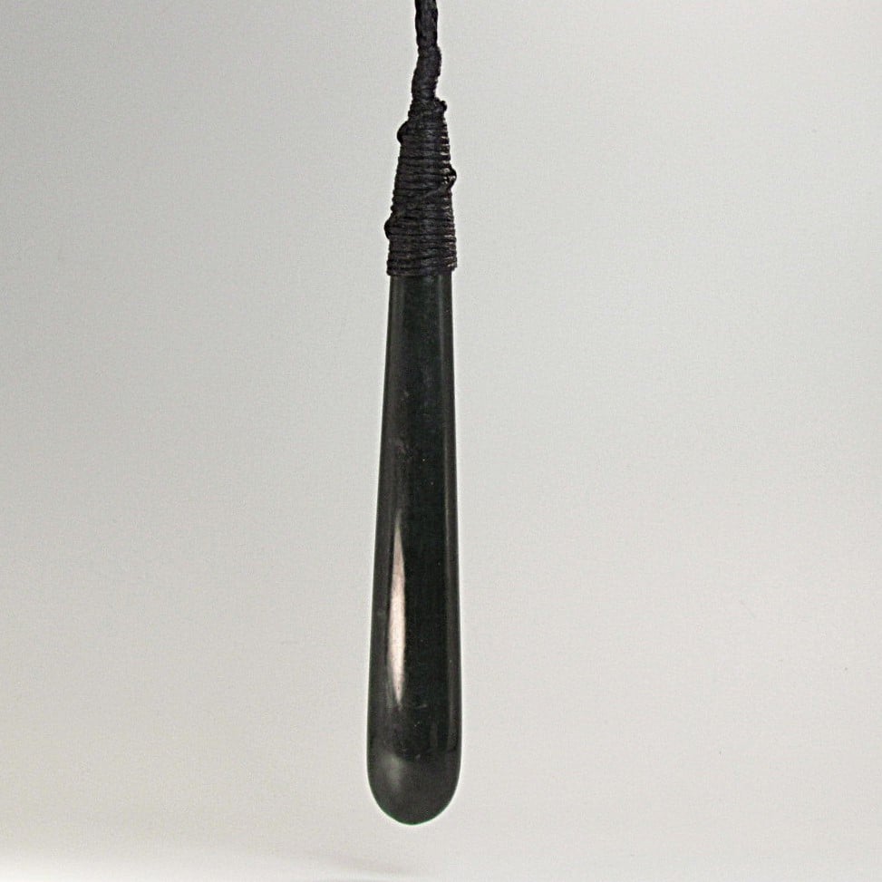 This Tangiwai Pounamu Roimata is 10cm long, carved from deep dark green stone with a fine clear grain. The Roimata, or teardrop, symbolises healing, comfort, and connection, making it a meaningful taonga to wear close. When held to the light, the stone glows beautifully, revealing its depth. Finished with a black spiral lashing. I also have a matching piece available if you’d like a set of two.