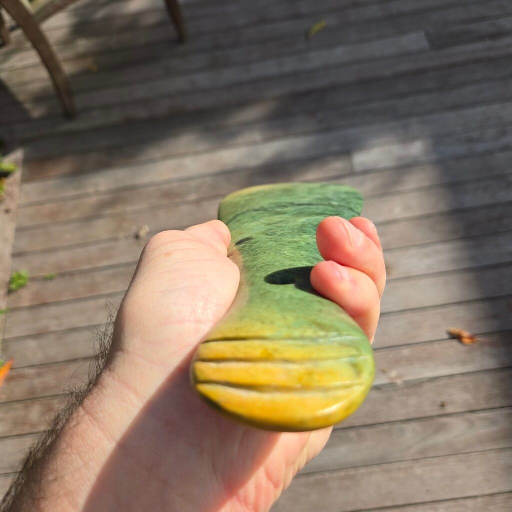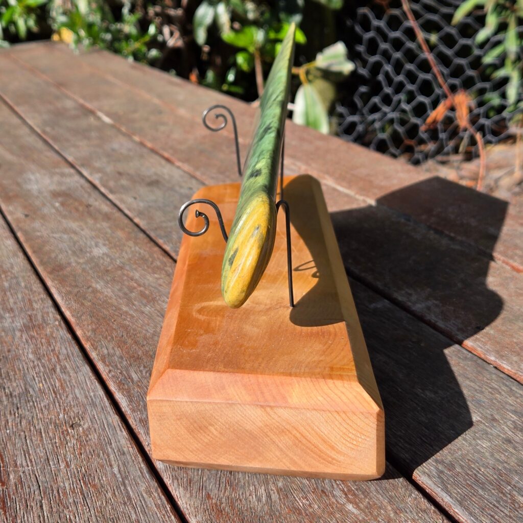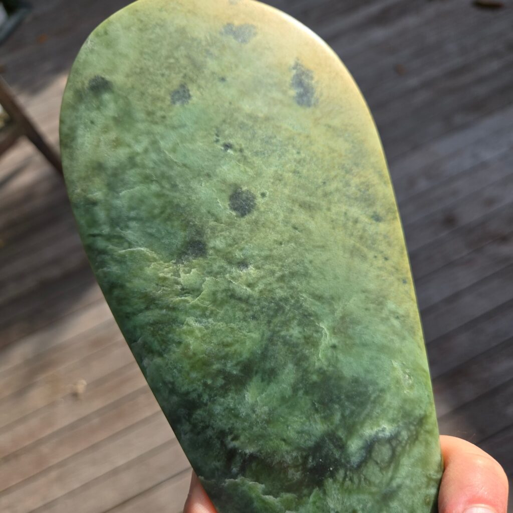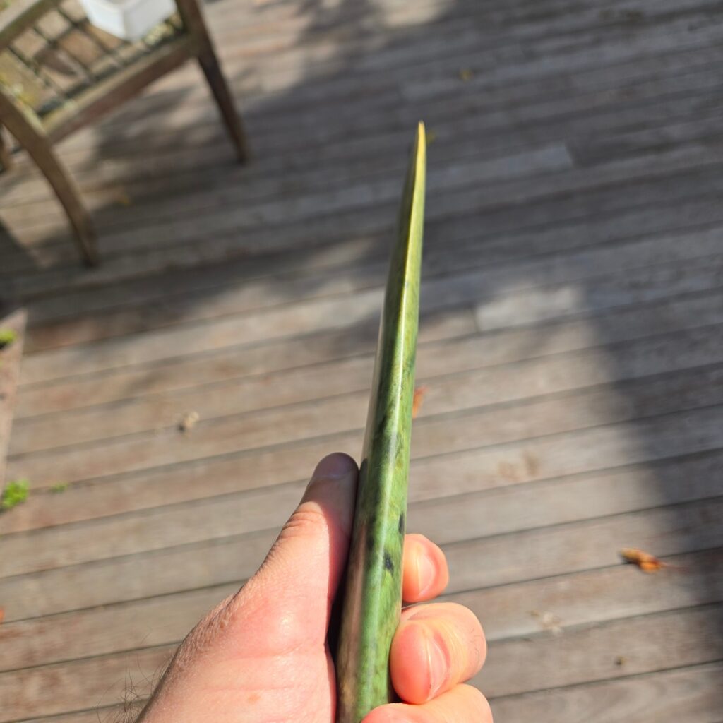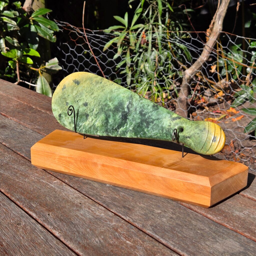 What I like about this piece is how clearly it shows the character of the stone. Even though it follows the same form as the original Mere, it stands completely on its own because of the Pounamu it’s made from.