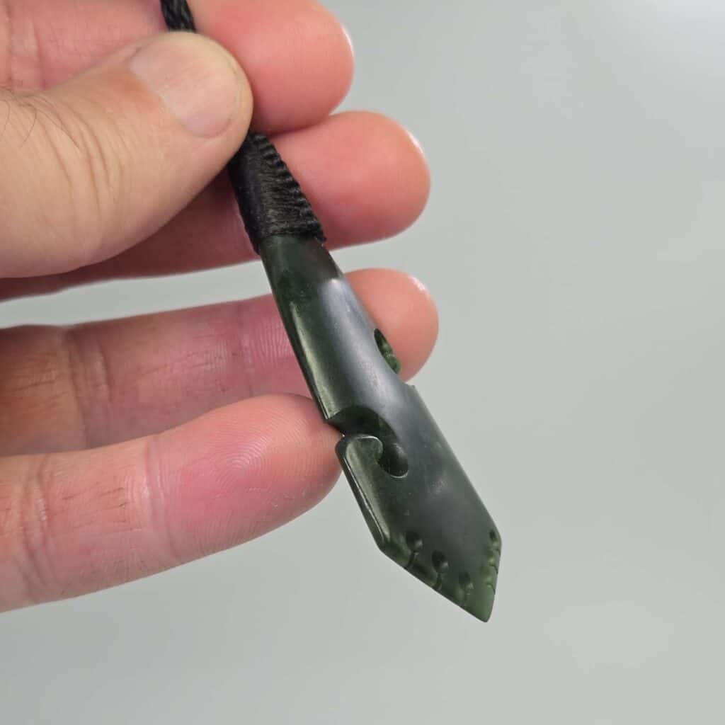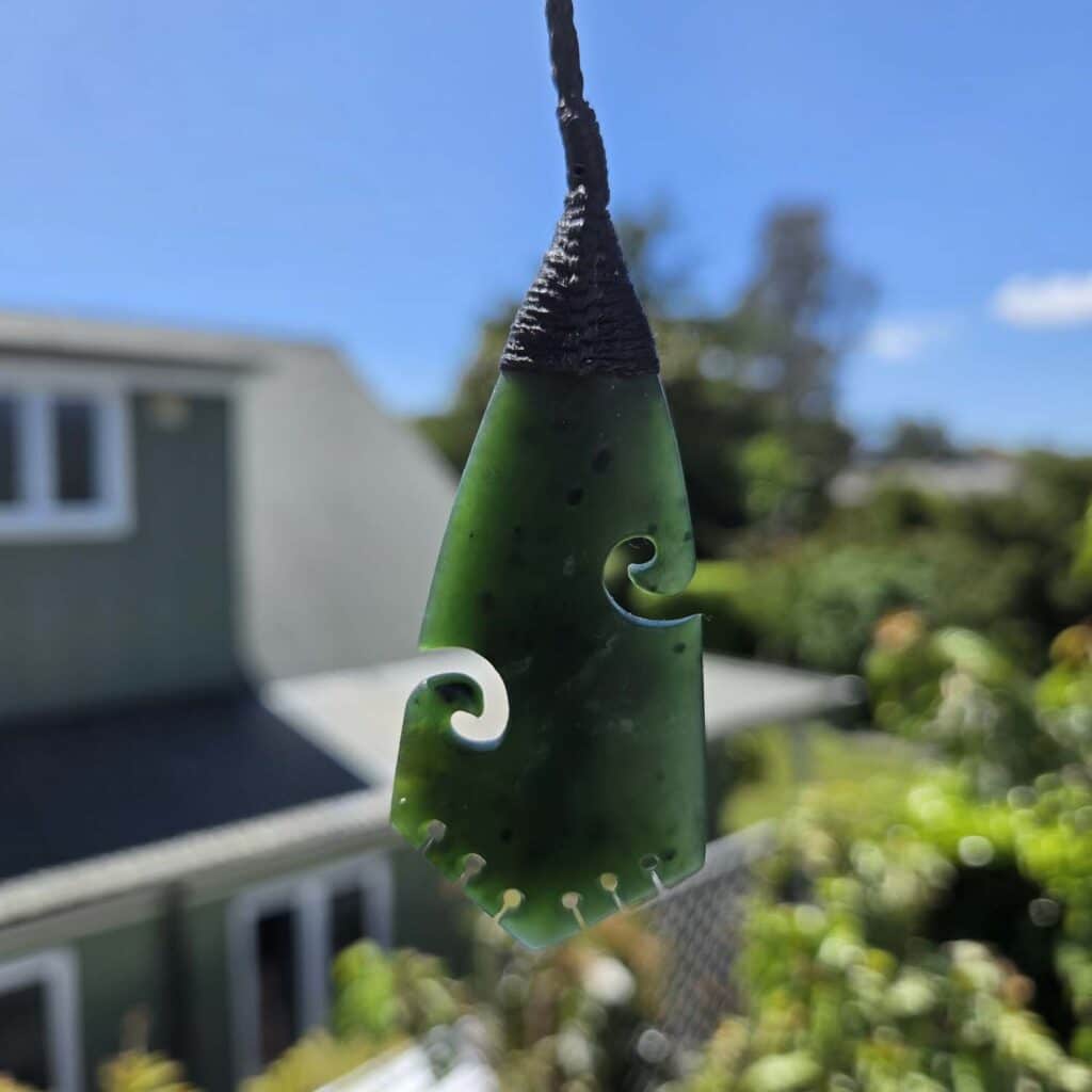 This Roimata was carved to complete a set. The owner already had a pair of earrings carved in the same design, each with a koru cut from the sides and three notches at the base. Those notches represent the past, present, and future — the journey of life and the growth that continues through it. This pendant brings those ideas together, combining both earrings into one unified taonga.