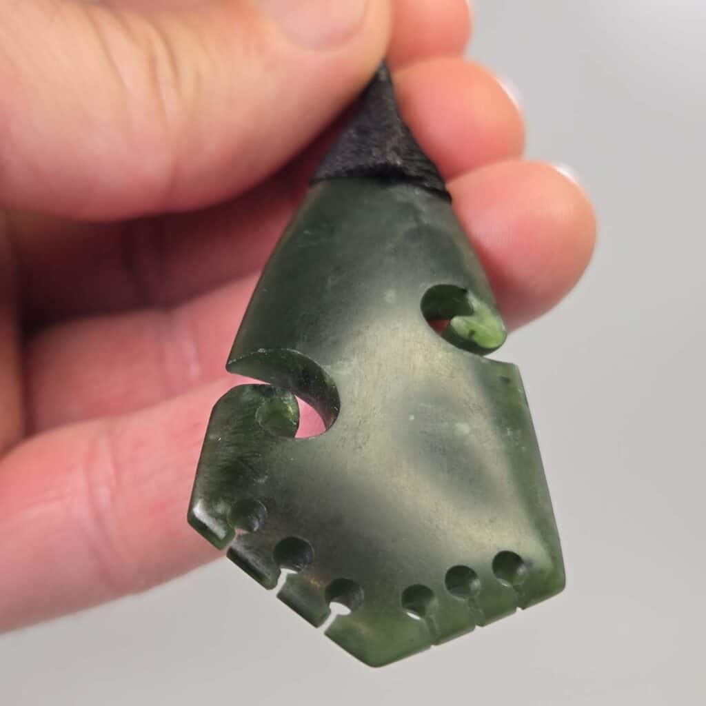 The pendant’s tapered form and notched base echo the earrings’ design, binding them together through shared symbolism and story. Now, with this Roimata, the set is complete — a taonga that unites the past and future through a single piece, honouring connection and continuity.